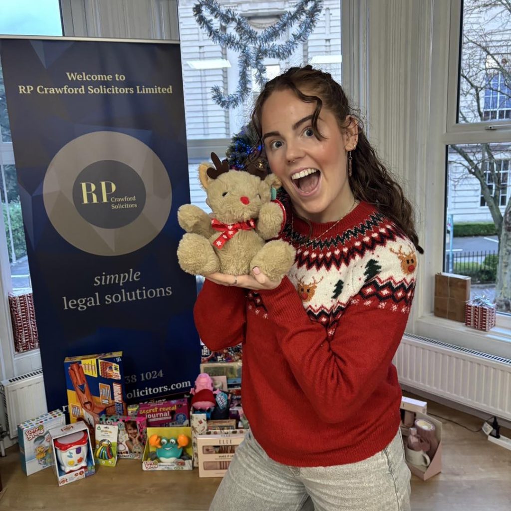 This year, the team at RP Crawford Solicitors Limited took part in a heartwarming initiative to support Cash for Kids Mission Christmas. On Thursday, December 12, 2024, the firm hosted a festive ‘Christmas Jumper Day’ alongside a delightful coffee run. Thanks to the generous contributions from their dedicated staff, the team collected over 50 gifts for children of all ages in need across Northern Ireland.